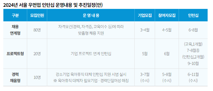 '우먼업 인턴십'과 연계해 추진되며, 인턴십 종료 후 인턴십 참여자를 정규직으로 전환하거나 1년 이상 계약 기업에 300만 원을 지급하는 내요으로. 올해 50개 기업을 대상으로 실시합니다.